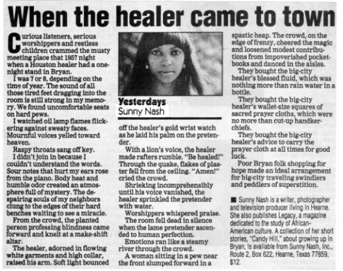 Sunny Nash's First Newspaper Column "Yesterdays" Knight-Ridder Bryan-College Station Eagle |